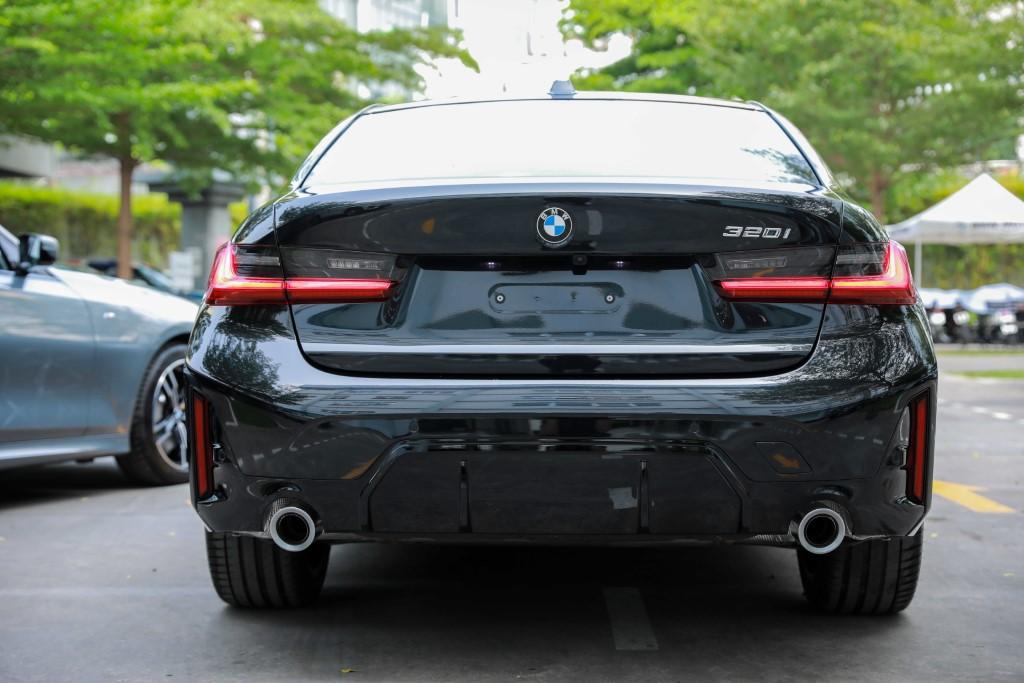 Phần đuôi của BMW 320i M Sport có thiết kế với cụm ống xả kép tròn đặt đối xứng nhau giúp chiếc xe chở nên cân đối và thể thao hơn, ngay bên trên đó là cụm đèn phản quang nép sát vào thân tạo nên những điểm nhất rất cuốn hút cho chiếc xe.