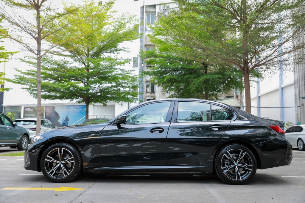 Nhìn từ bên hông xe, BMW 320i M Sport trông thể thao hơn nhờ gói trang bị “M Sport” vừa thể thao kết hợp thêm nét sang trọng, giúp chiếc xe chở nên thanh thoát và dữ dằn hơn nhiều.
