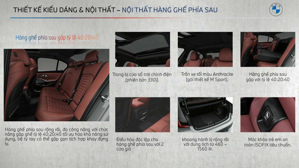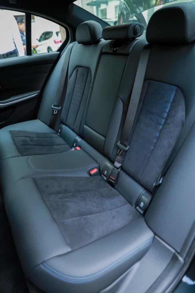 Hàng ghế sau trên BMW 320i M sport giúp người ngồi có cảm nhận ngay sự thoải mái dõ dệt, dễ chịu bởi không gian rộng thoải mái. Người có chiều cao 1m8 ngồi tự do, không bó buộc mà khoảng cách từ đầu gối đến hàng ghế trước vẫn dư 10-15cm, khoảng cách từ đầu đến trần cũng cực kỳ thoải mái 15-18cm.