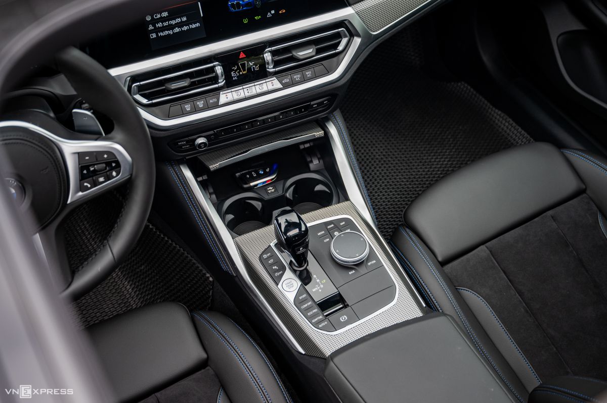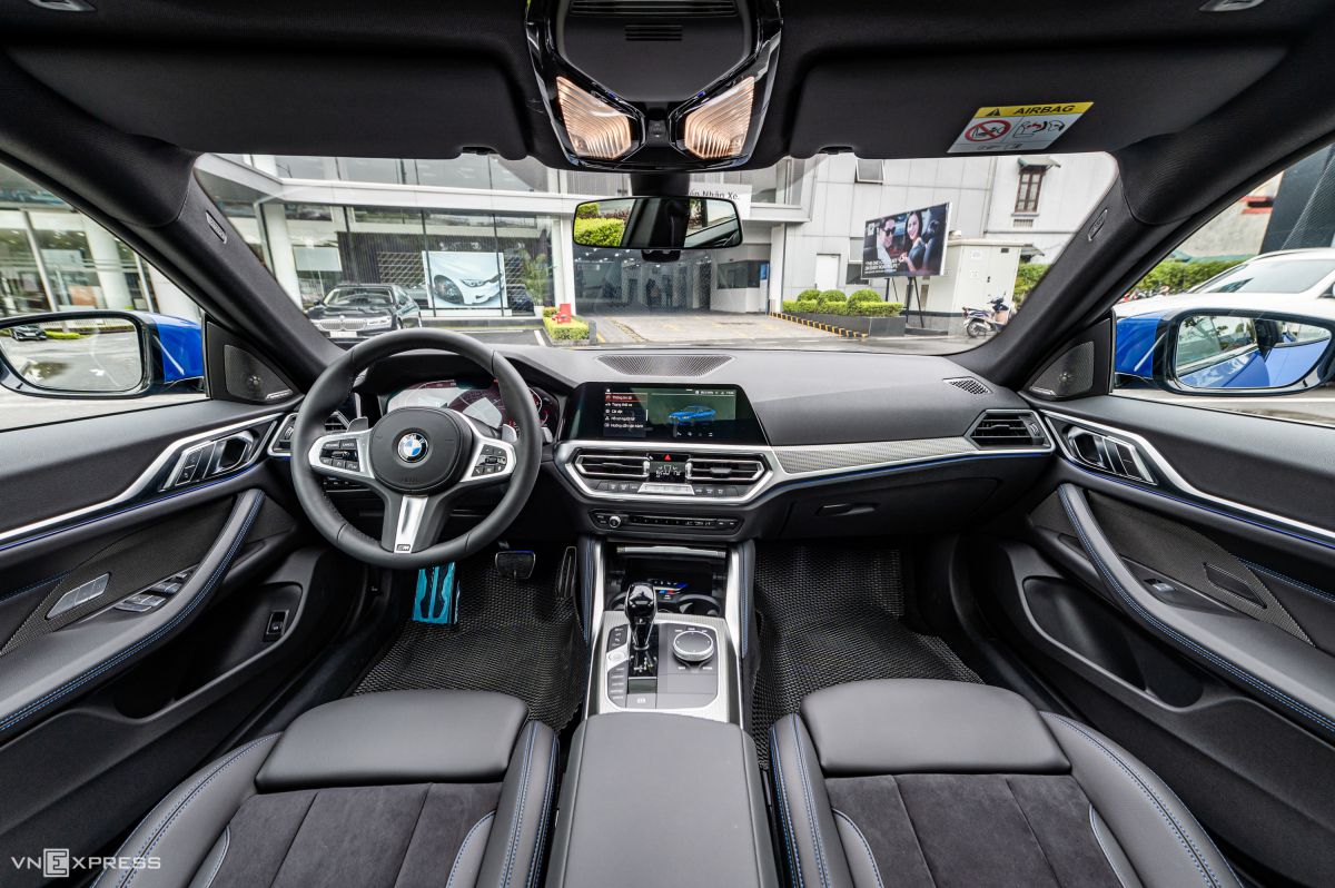 Khoang nội thất không có nhiều điểm khác biệt so với Series 3 (G20), tông màu đen chủ đạo, kết hợp các chi tiết bằng nhôm Tetragon sáng màu và đèn viền nội thất. Vô-lăng 3 chấu của M Sport tích hợp các nút rảnh tay và lẫy chuyển số. Màn hình cảm ứng giải trí trung tâm kích thước 10,25 inch đi kèm hệ điều hành BMW 7.0, hỗ trợ tiếng Việt, khả năng kết nối Bluetooth, Apple CarPlay và Android Auto.