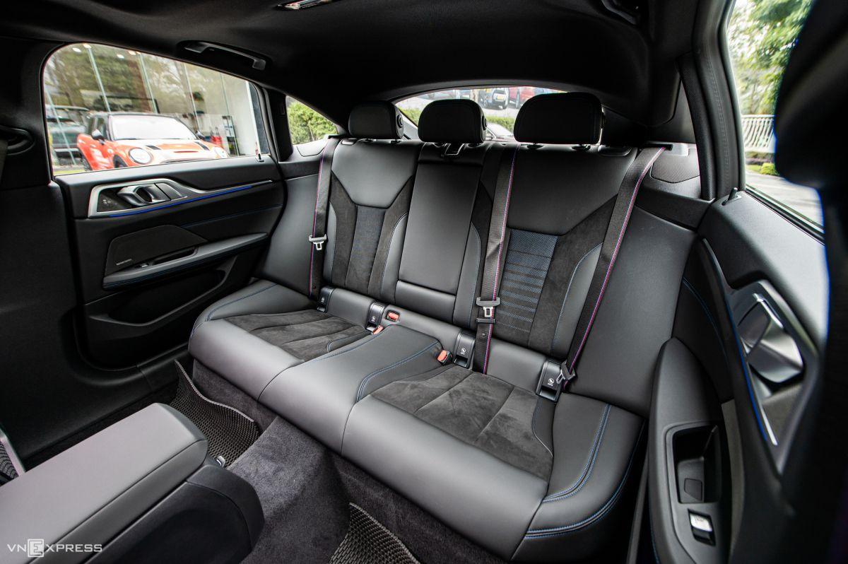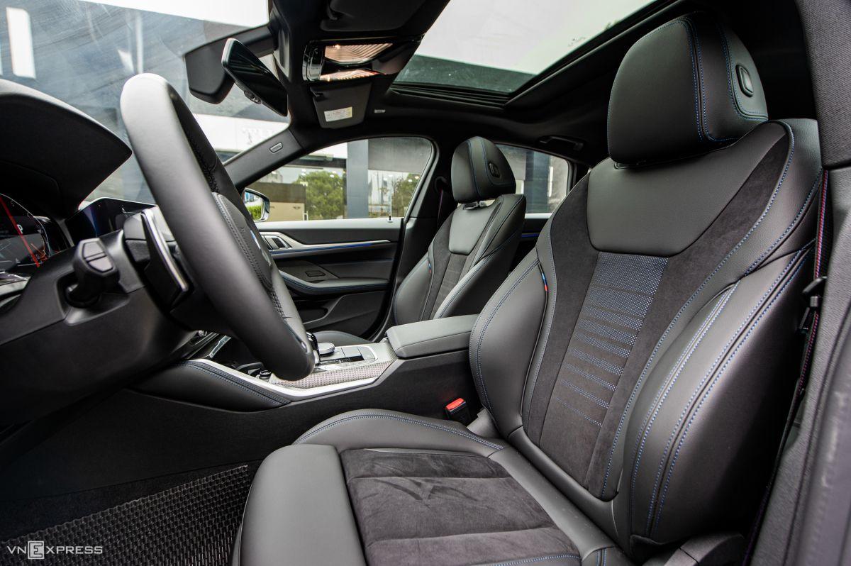 Hàng ghế trước dạng thể thao, ôm người, bọc chất liệu giả da Sensatec màu đen, đi kèm chỉ khâu màu xanh cùng dây đai an toàn có trang trí viền màu xanh nhạt-xanh đậm-đỏ biểu thị cho M Performance.